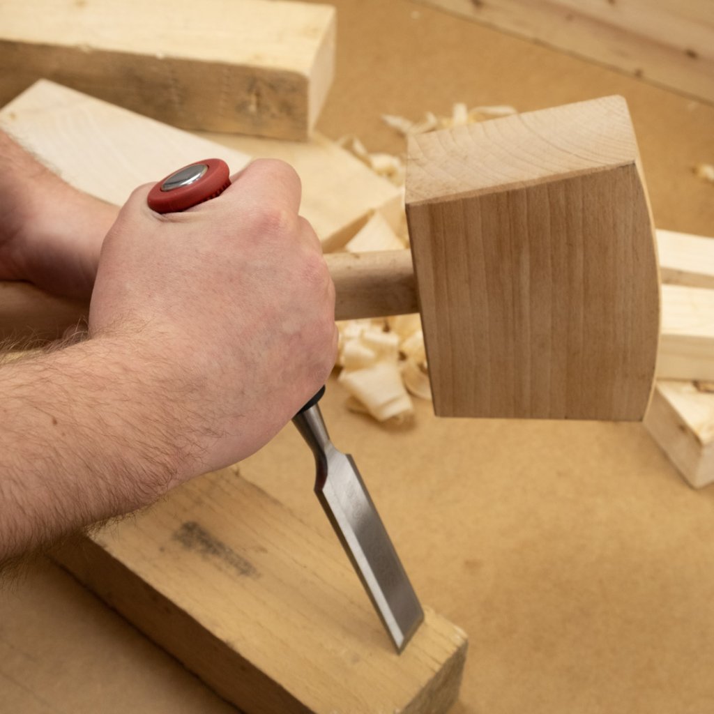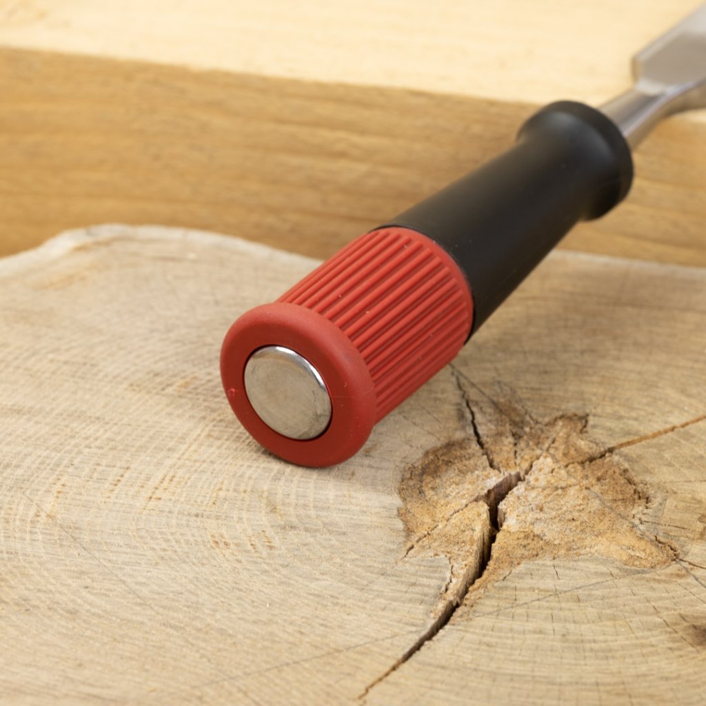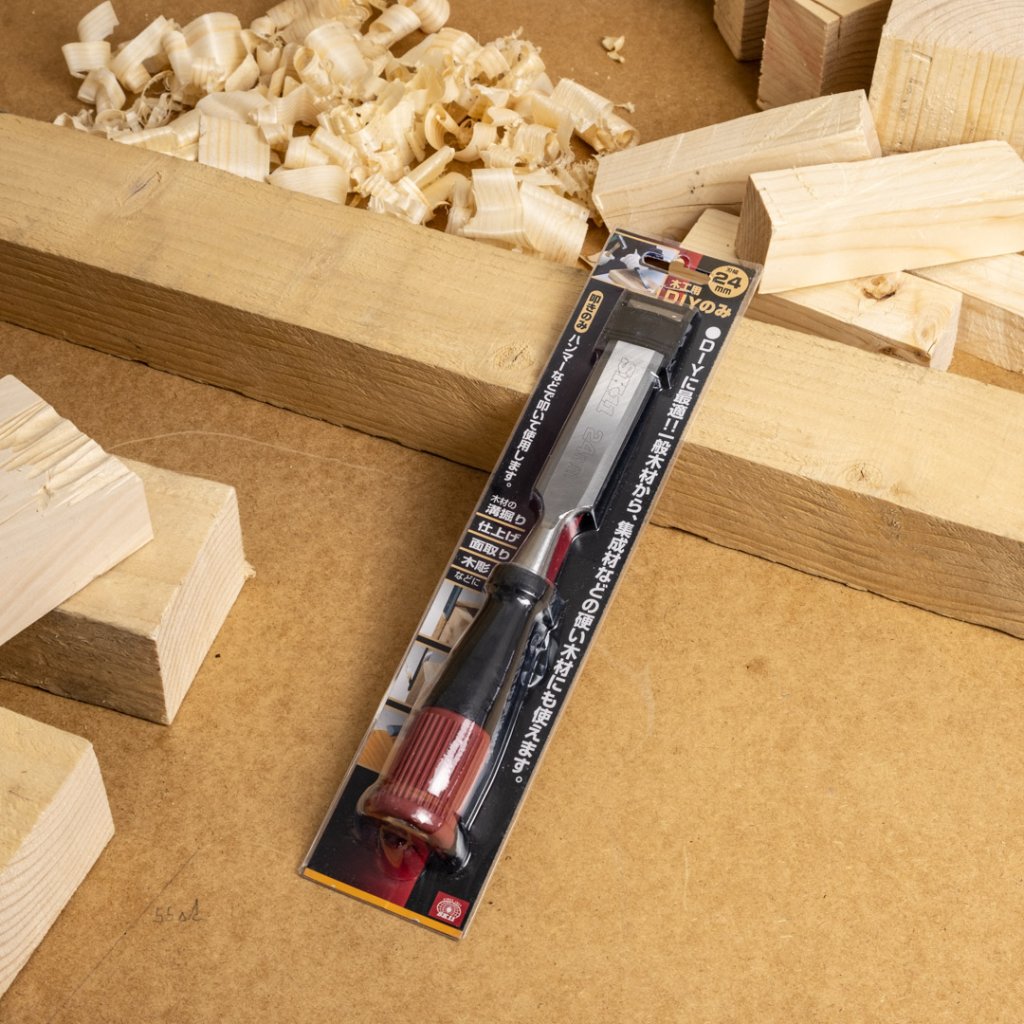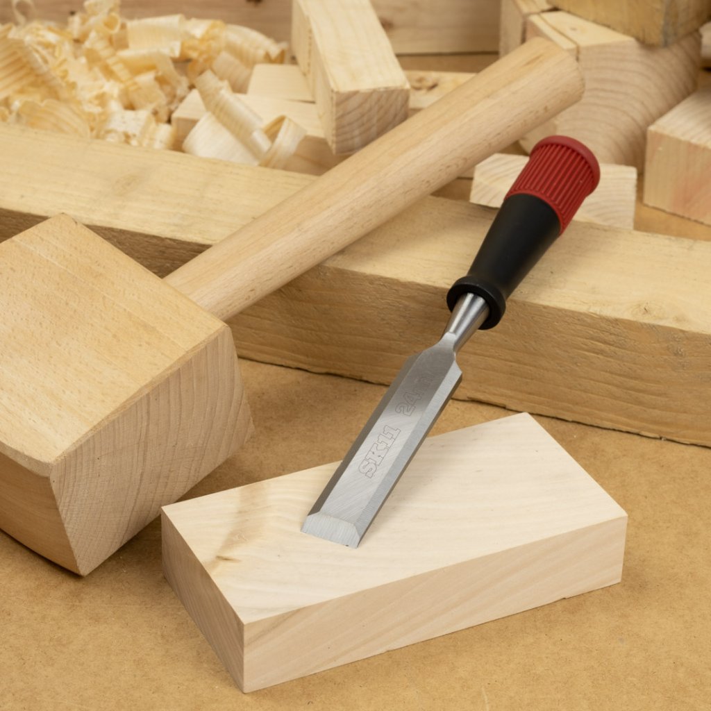 Japanese chisel from the SK11 brand for grooving, chamfering, carving, carpentry, or finishing work. The striker is connected to the blade for higher strength. Ergonomic rubber handle. The blade is sharpenable. Blade hardness 62 Rc.