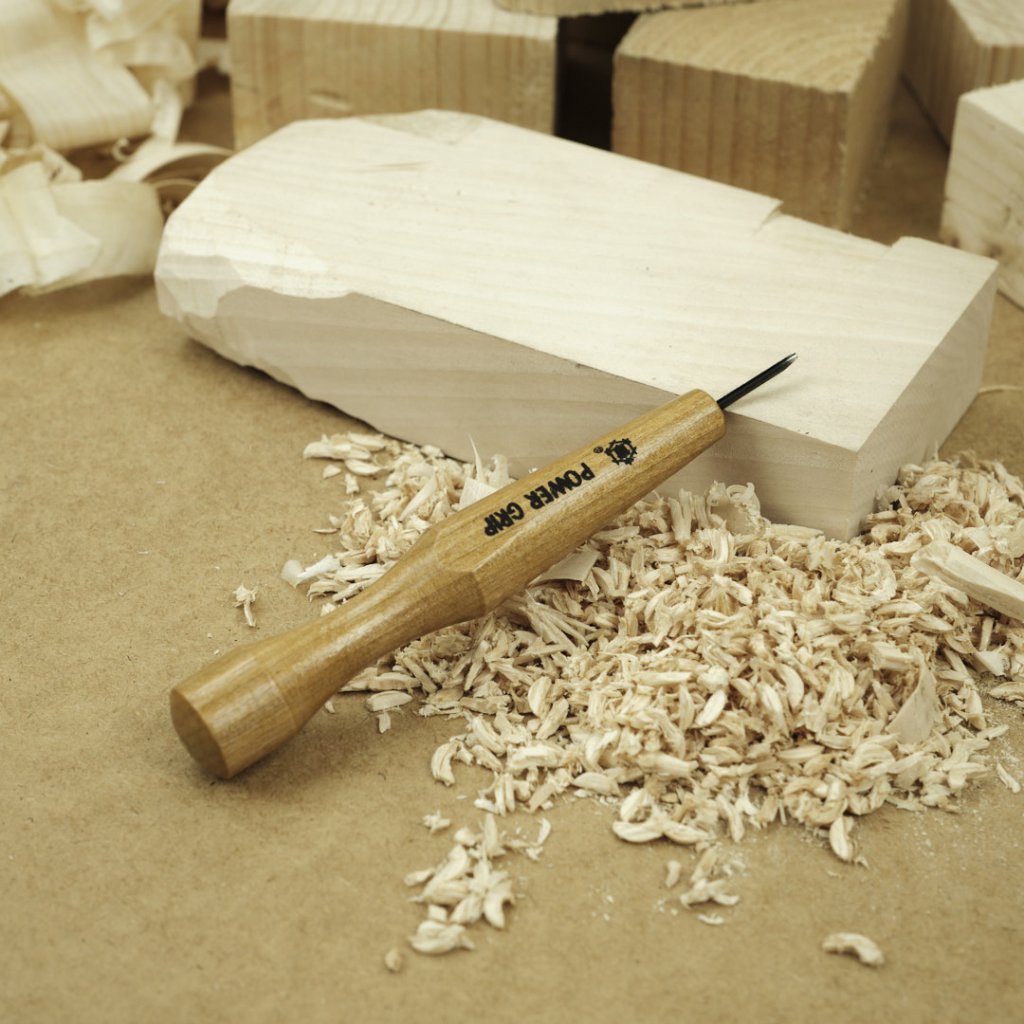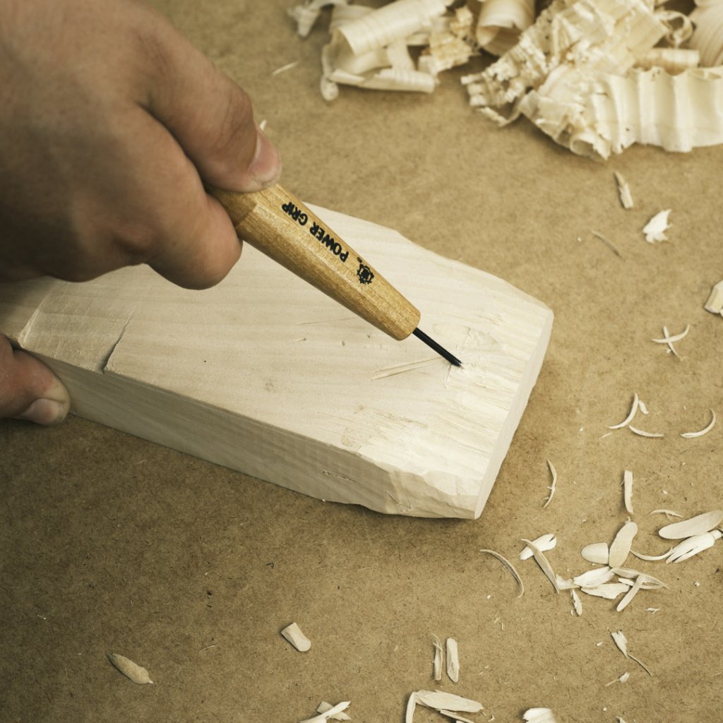 Japanese carving mini-chisel by the MIKISYO brand with a blade width of 1.5 mm. Sharp and re-sharpenable blade. Sharpenable using Japanese water stones. Ergonomic wooden Power Grip handle made of red oak for better grip. Plastic cap protects the blade and the user from damage.