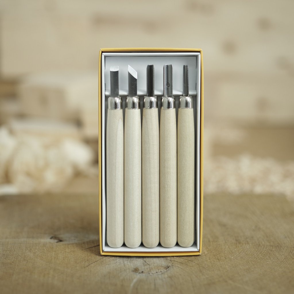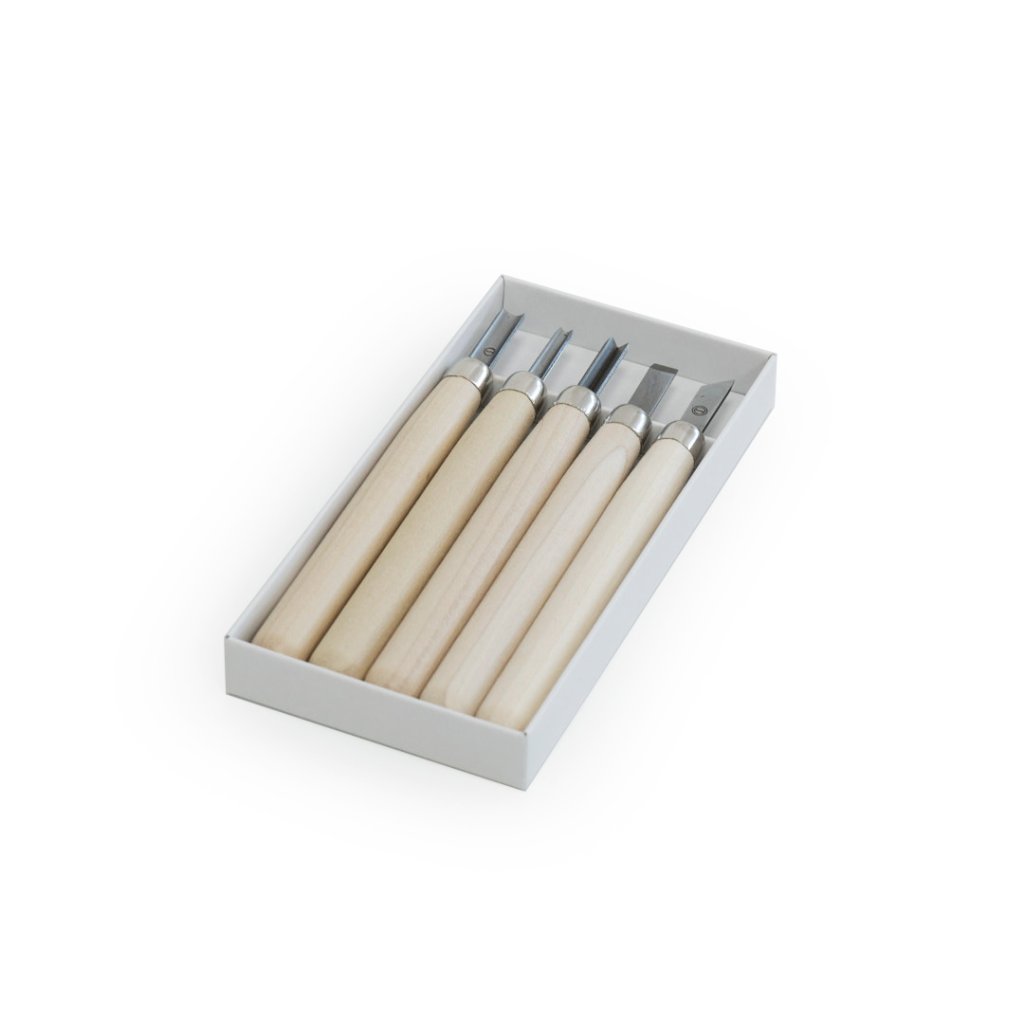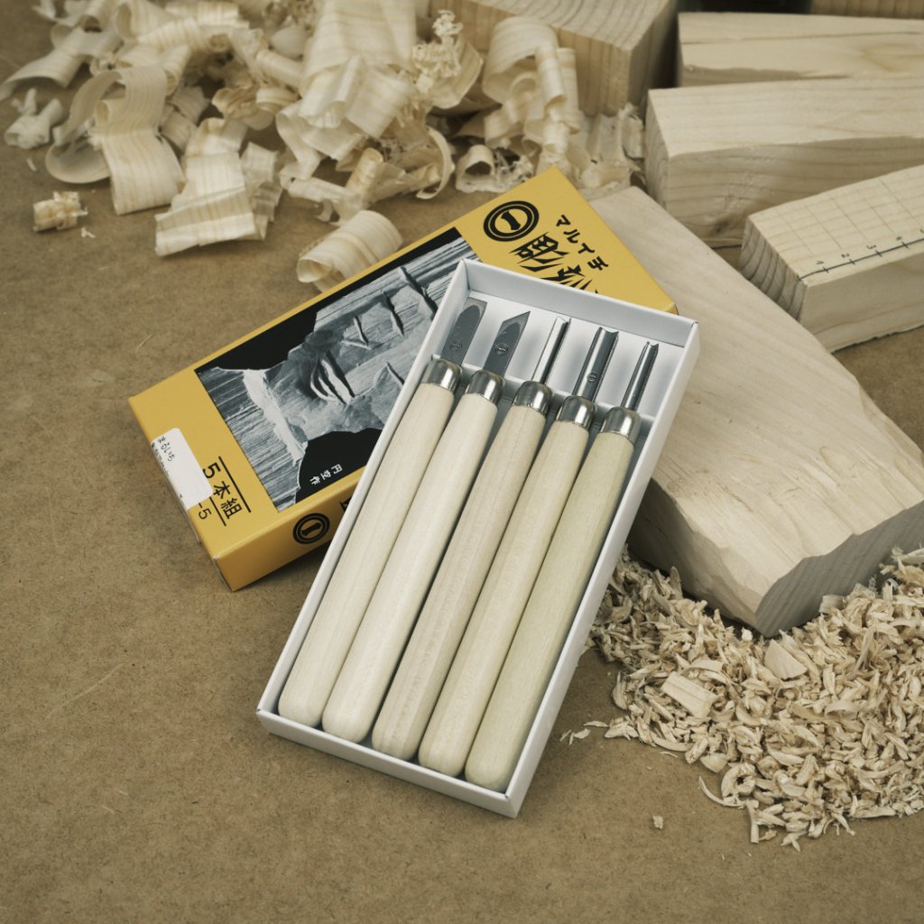 MARUICHI T-5 Mini Carving Chisel Set with Wooden Handle - 5 Pieces