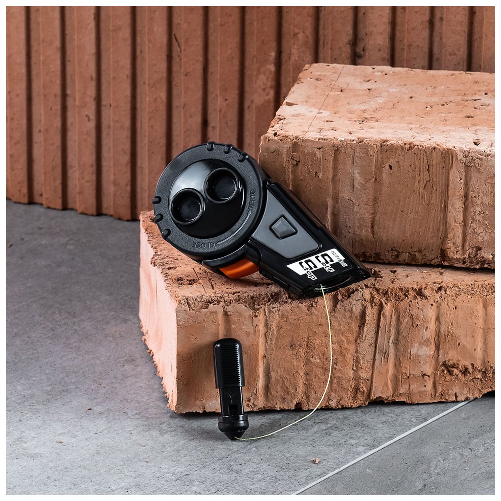 Insert the locking pin into the starting point and stretch the cord to the mark. Then take the cord colored with ink or chalk and "snap" it like a string. When the cord hits the material, the color is released, and you have your marking. An accurate line for starting a construction or for precise cutting of battens on the roof. The applications are countless. Want to know more?