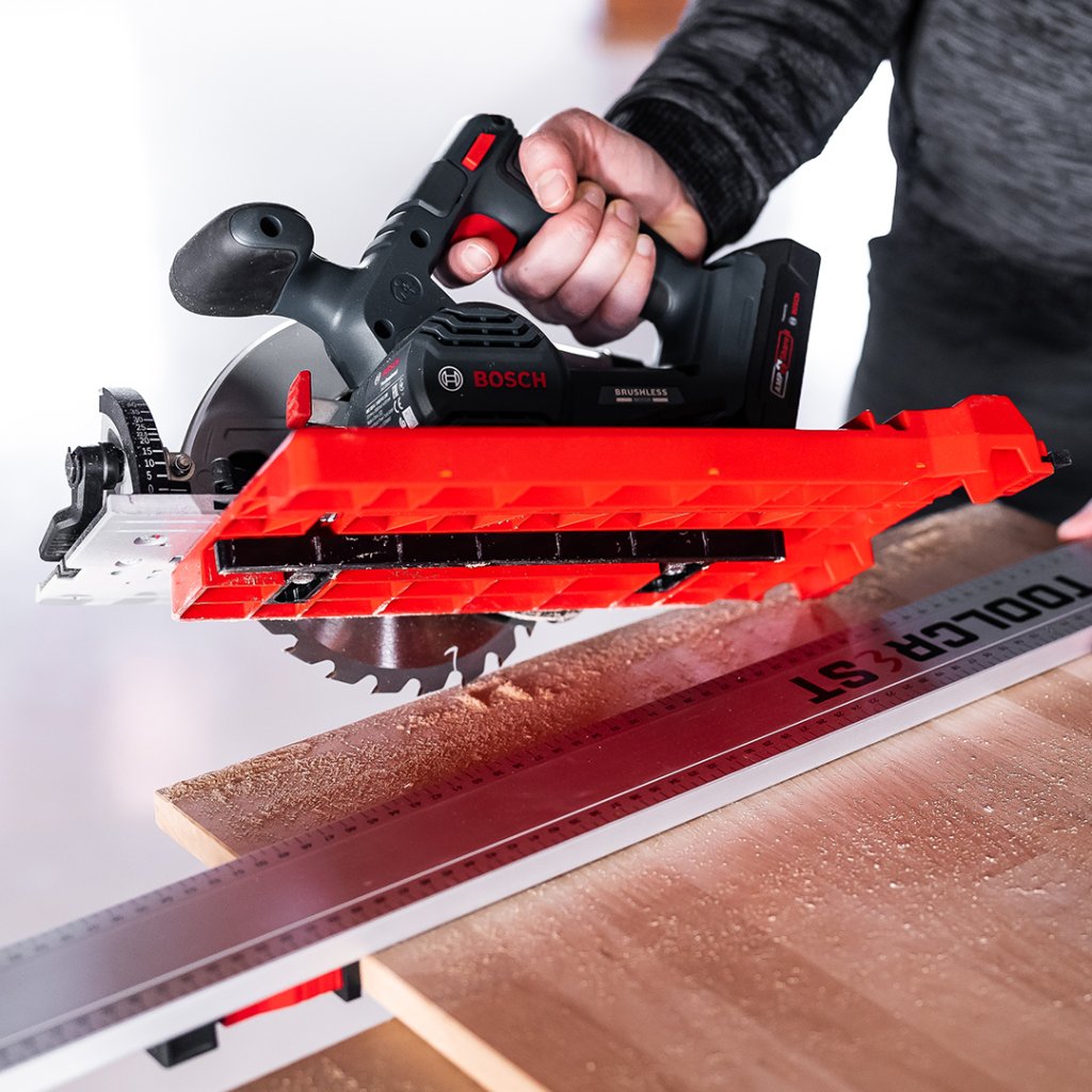 TOOLCREST plastic adapter for attaching a circular saw. The saw guide is a great tool, but without a compatible sliding adapter, its use is possible but more difficult. Therefore, the TOOLCREST brand provides a complete solution. Both parts can be ordered separately as needed.